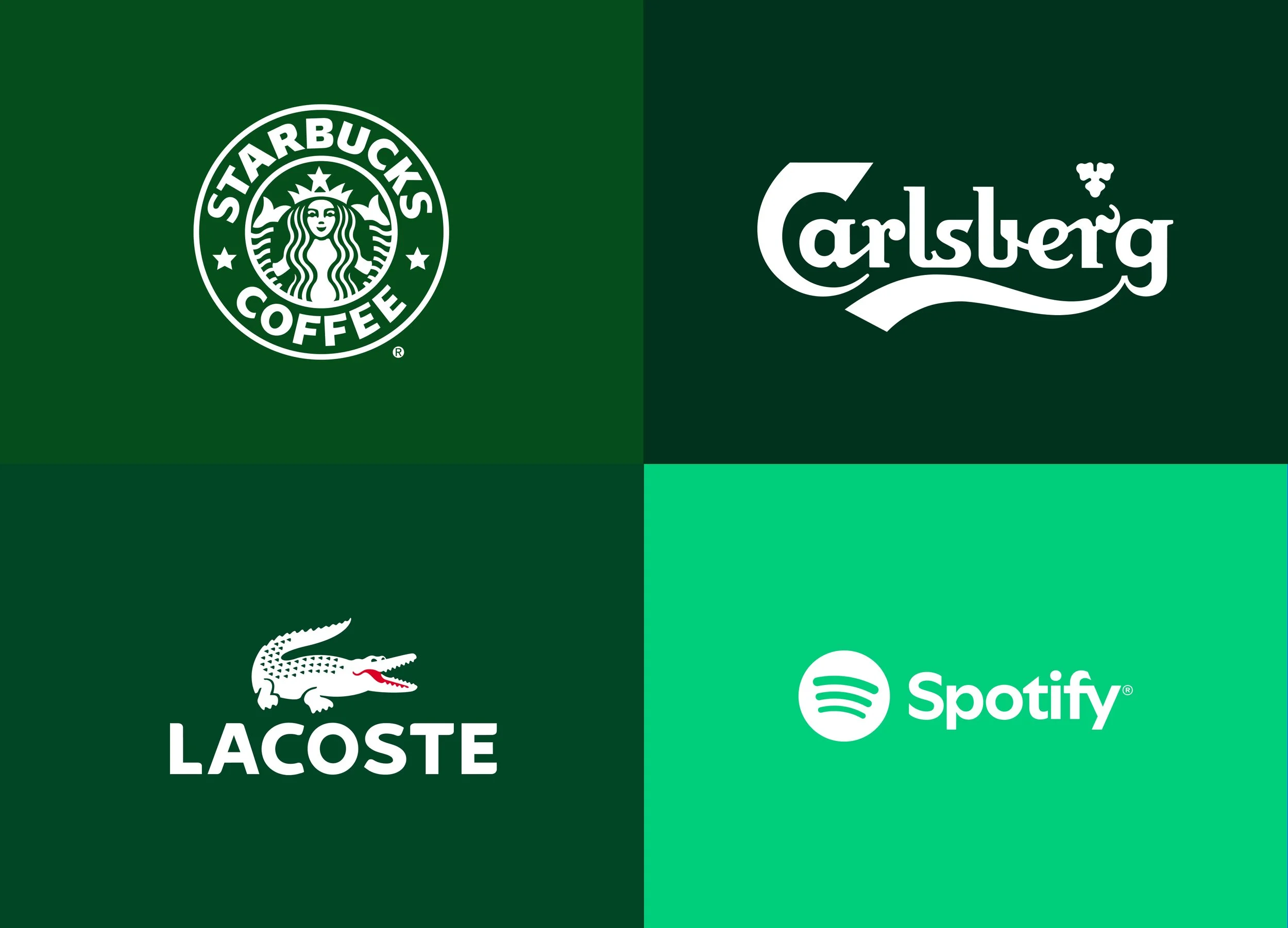 Internationally, green continues to play a central role in several well-established brand systems. Carlsberg uses green as a carrier of tradition and consistency, linking the colour to heritage, craftsmanship and quality. Lacoste employs green as a recognisable marker that supports its sporty elegance and timeless positioning, allowing the brand to remain restrained yet distinctive across decades.